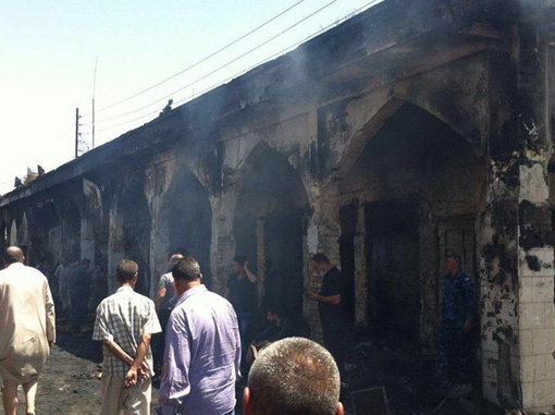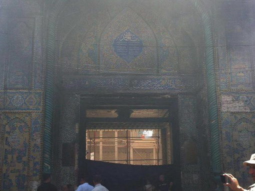 أثر التفجير الإرهابي لمرقد السيد محمد سبع الدجيل مسؤول العلاقات العامة لمكتب سماحة المرجع الشيرازي دام ظله يتفقد المرقد الطاهر