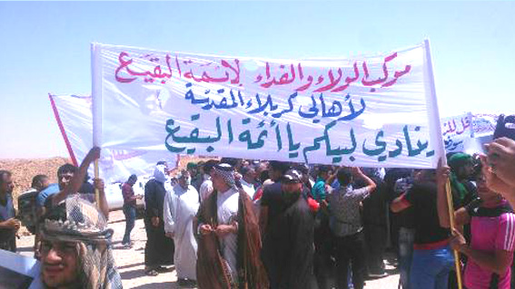 انطلاقاً من توجيهات سماحة المرجع الديني آية الله العظمى السيد صادق الحسيني الشيرازي دام ظله بشأن قضية إحياء اليوم البقيع العالمي، ومنها قول سماحته: «الأحرى بالمؤمنين لا سيما العلماء والمفكّرين وأصحاب القلم والمبلّغين أن يستفيدوا من الحريّة والإمكانات الموجودة، وأن يعيروا قضية البقيع الغرقد أهمية قصوى»، اعتصم موكب الولاء والفداء والفتح لمراقد أهل البيت عليهم السلام مستنكراً جريمة هدم المراقد المقدسة لأئمة أهل البيت عليهم السلام في البقيع الغرقد وتعمد إهمالها بالشكل المهين المعروف من قبل النظام السعودي الوهابي، وذلك بتاريخ يوم الاربعاء الثامن من شهر شوال المكرّم 1437 للهجرة. الموكب المكّون من ألف مؤمن انطلق بمناسبة الذكرى السنوية الرابعة والتسعين لتهديم المراقد الطاهرة في البقيع الغرقد من أمام مرقد العلاّمة الشيخ أحمد بن فهد الحليّ قدّس سرّه في مركز مدينة كربلاء المقدّسة متوجهاً الى منطقة جديدة عرعر المتاخمة للحدود السعودية مطالبين المنظمات الإنسانية للوقوف أمام المد التكفيري وانتهاكاته المستمرة للمقدسات. الحاج السيد عارف نصر الله ـ مسؤول العلاقات العامة في مكتب سماحة المرجع الشيرازي دام ظله والمنظم للاعتصام والمظاهرة ـ ألقى كلمة بالمناسبة أكد من خلالها ان جريمة هدم واهانة مراقد أهل البيت عليهم السلام في البقيع الغرقد اسفرت عن الوجه الوهابي الحاقد على عظماء الإسلام المحمدي الأصيل وعلى المؤمنين، كما وعرّفت العالم اجمع همجية هذا الفكر الدخيل على الاسلام. كذلك أكد ان الله سبحانه وتعالى أبى إلا ان يتم نوره ولو كره الكافرون وسيأتي اليوم ـ قريباً ان شاء الله تعالى ـ ويعاد البناء بأروع ما يكون لترتفع قباب أئمتنا عالية في سماء المدينة المنورة. وفي الختام ألقي بيان المعتصمين متضمناً المطالب التالية: 1. لابد من الاسراع بإعادة بناء ما هدمه التكفيريون من قبور مقدسة لائمة اهل البيت عليهم السلام واصحابه البررة في المدينة المنورة وسائر آثار النبيّ وآل بيته وأصحابه التي تعرّضت للإزالة تحت أيّ ذريعة كانت. ولابد ان تعلم السلطات السعودية انها هي المسؤولة عن هذا الدمار الذي لحق بهذه المقدسات الاسلامية وان لا تتنصل عن مسؤوليتها الشرعية في إعادة إعمار البقيع. فهذه الأماكن ملك لجميع المسلمين دون استثناء بل انها ملك للانسانية جمعاء فلا يحقّ لأحد أن يصادر حريّة المعتقد والقوانين والمواثيق والأعراف الإسلامية والإنسانيّة والدولية. 2. الحد من التجاوزات التي يقوم بها المتطرفون من مضايقة وتجاوز لكل فرد يود ان يقوم باداء مراسيم الزيارة للائمة اهل البيت عليهم السلام ولابد ان تكون هنالك ادارة تحرص على اداء الشعائر والطقوس الدينية بكل حرية. 3. اعتبار هدم المراقد المطهرة جريمة بحقّ الإنسانية والإسلام والتعريف من خلال الاعلام السعودي وبقية النشاطات الاعلامية حول هذه الجريمة النكراء ومرتكبيها. 4. كما واننا ندعو الى ان تقوم الحكومة العراقية وبمختلف الطرق الدبلوماسية والدولية للتدّخل وبناء البقيع فوراً ومناشدة منظمة المؤتمر الإسلامي والأمم المتحدة ومنظمة حفظ التراث العالمي «اليونسكو». 5. وندعو كافة منظمات المجتمع المدني الاسلامية وغير الاسلامية من التي تدافع عن حقوق الانسان وحرية الراي والمعتقد الى رفع دعاوى قضائية في المحاكم الدولية ومنها محكمة العدل الدولية في لاهاي، ضد التكفيريين الذين أقدموا على جريمة هدم البقيع والاستهانة بالمقدسات الإسلامية في الحجاز فإنّ حفظ المقدسات الدينية حقّ مكفول في الأمم المتحدة لكلّ الديانات. 6. تسجيل الآثار الإسلامية في الحجاز عالمياً وفي اليونسكو وغيرها بغية عدم السماح للوهابيين بإزالة ما تبقى من آثار الرسول صلى الله عليه وآله وأهل بيته الأطهار عليهم السلام وبناء ما تهدّم منها. ومن أجل تحقيق هذه المطالب المشروعة نهيب بالمسلمين عامة وعلماء الدين والمثقفين والكتاب والإعلاميين وشيوخ القبائل خاصة أن يدافعوا عن حقهم بحفظ تراث النبي و