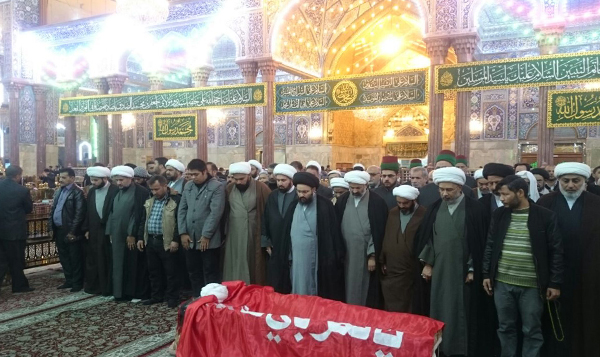 تشييع جثمان الفقيد آية الله الشيخ المحمدي البامياني في مدينة كربلاء المقدسة بمشاركة مكتب سماحة المرجع الشيرازي دام ظله