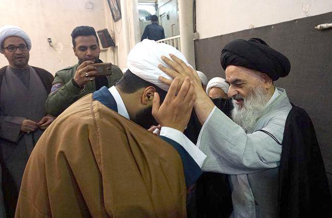 بهذه المناسبة العظيمة والمباركة اعتمر العمامة على يد سماحة المرجع