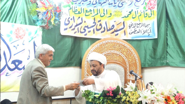 أُقيم في مكتب سماحة المرجع الديني آية الله العظمى السيد صادق الحسيني الشيرازي دام ظله في العاصمة السورية دمشق ـ منطقة السيدة زينب عليها السلام ـ حفل بهيج بمناسبة ذكرى ولادة الإمامين الهمامين محمد بن علي الباقر وعلي بن محمد الهادي عليهما السلام وذلك في الأول من شهر رجب الأصب 1438 هجرية. افتتح الحفل بتلاوة قرآنية مباركة، ومن ثم ألقى فضيلة الشيخ محمد بيلو جالو كلمة بالمناسبة تحدث حول جوانب من السيرة العطرة الوضاءة للإمامين صاحبي الذكرى عليهما السلام وابرز صفاتهما ودلائل إمامتهما سلام الله عليهما. بعد ذلك شنّف أسماع المحتفلين الشاعر والمحامي زكي النوري بقصيدة مديح بحق صاحبي المناسبتين السعيدتين، ليرتقي بعد ذلك منصة الحفل المنشد الحسيني أبو علي حمزة بكلمات المديح وقصائده الناطقة بصفات ومنازل وعلم الإمامين الباقر والهادي صلوات الله عليهما. كما وألقى فضيلة السيد رياض الحسين كلمة بالمناسبة تمحورت حول عظمة ومكانة الإمامين عليهما السلام مع جوانب من سيرة حياتهما، وفي ختام الحفل قدّمت العديد من الهدايا بالمناسبة للفائزين بالمسابقة العقائدية والتاريخية المقامة.