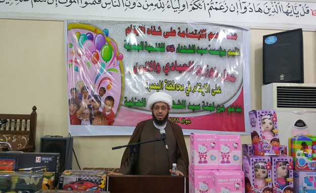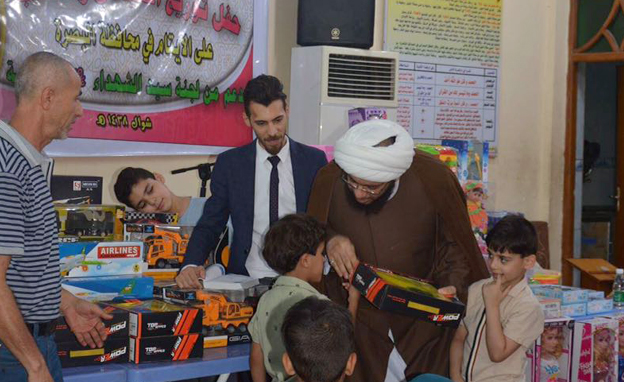 قامت مؤسسة سيد الشهداء عليه السلام للتنمية البشرية وبدعم من لجنة سيد الشهداء عليه السلام العالمية وبالتنسيق مع الهيئة الصادقية ـ إحدى الهيئات التابعة لمكتب سماحة المرجع الديني آية الله العظمى السيد صادق الحسيني الشيرازي دام ظله في مدينة البصرة ـ بتقديم مجموعة من الهدايا ليتامى شهداء الحشد الشعبي المبارك الّذين قدَموا دمائهم دفاعاً عن المقدسات والمؤمنين. جاء ذلك بمناسبة حلول عيد الفطر المبارك لهذا العام 14387 هجرية من أجل إدخال البهجة والسرور على قلوب الأيتام انطلاقا من شعار: «معاً نرسم البسمة على شفاه الأيتام»، حيث قدّمت الهدايا ضمن برنامج حفل أعدته لذلك.