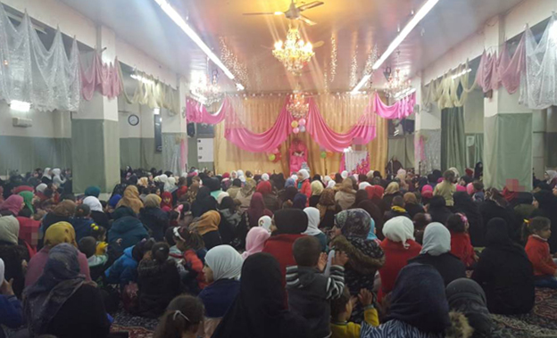 الحوزة العلمية الزينبية النسائية تحتفل بذكرى ولادة السيدة زينب الكبرى عليها السلام أقامت الحوزة العلمية الزينبية النسائية المجاورة للمرقد المنَّور والمطهر لعقيلة الطالبيين السيدة زينب الكبرى بنت أمير المؤمنين الإمام علي بن أبي طالب عليهما السلام في العاصمة السورية دمشق احتفالاً بهيجاً بمناسبة ولادتها الميمونة في الخامس من شهر جمادى 1439 هجرية. وقد شارك في إحياء الحفل فاضلات الحوزة وطالباتها وجموع المؤمنات، حيث استهل بتلاوة قرآنية مباركة، وشهد كلمات بالمناسبة حول الخصال العالية والصفات النبيلة لصاحبة المناسبة المباركة دورها في الحفاظ على الدين القويم والإصلاح العام كونها شريكة الجهاد المقدس في النهضة الحسينية الخالدة. كما شهد الحفل إلقاء قصائد وأناشيد المديح والابتهاج بالولادة الميمونة من قبل بعض المنشدات الحسينيات وطالبات الحوزة الزينبية، وقد ختم الحفل بإجراء مسابقة عقائدية لتقدّم الهدايا والجوائز وفقها.