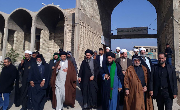 امتثالاً لتوجيهات سماحة المرجع الديني آية الله العظمى السيد صادق الحسيني الشيرازي دام ظله بالاهتمام بمراقد أهل البيت وما يتعلق بعهم من صحابة أجلاء زار وفد ضمَّ عدداً من المؤسسات والشخصيات الفاعلية ضمن المرجعية الدينية الرشيدة مرقد الصحابي الجليل سلمان المحمدي رضوان الله عليه في قضاء المدائن. الوفد ضمّ ممثلي المركز الثقافي الإسلامي في مدينة بغداد ومؤسسة المنبر الحسيني ومدرسة وحسينية الإمام الحسن الزكي عليه السلام وكذا شخصيات ثقافية واجتماعية وعشائرية وجمعاً من المنشدين والشعراء الحسينيين وطلبة علوم أهل البيت عليهم السلام. وقد اطلع الوفد على نشاطات الأمانة الخاصة للمرقد الشريف وأعمال الأعمار فيه وخطط التطوير والخدمات المقدَّمة للزوار الكرام، وجرى الحوار حول أهمية تطوير المرقد الطاهرة وتنوع نشاطاته واتساعها. كما وأقام الوفد مجلس عزاء بمناسبة الأيام الفاطمية ذكرى شهادة الصدّيقة الكبرى السيدة فاطمة الزهراء عليها السلام وقد ارتقى المنبر الخطيب الشيخ صلاح اللامي ومن بعده المنشد الحسيني الشيخ أبو أياد.