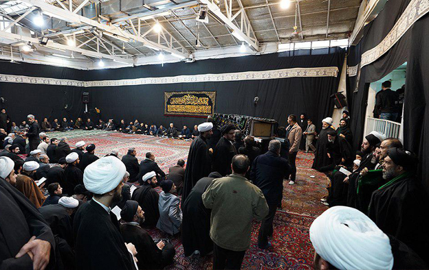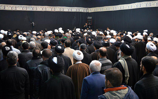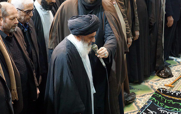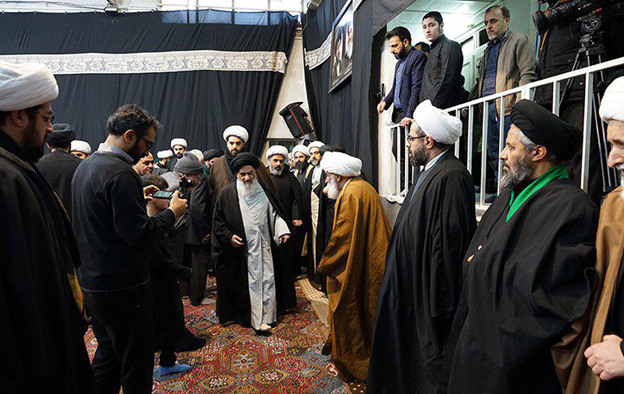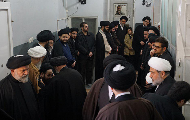 المرجع الشيرازي دام ظله على جثمان العلوية المرحومة، في بيت سماحته،