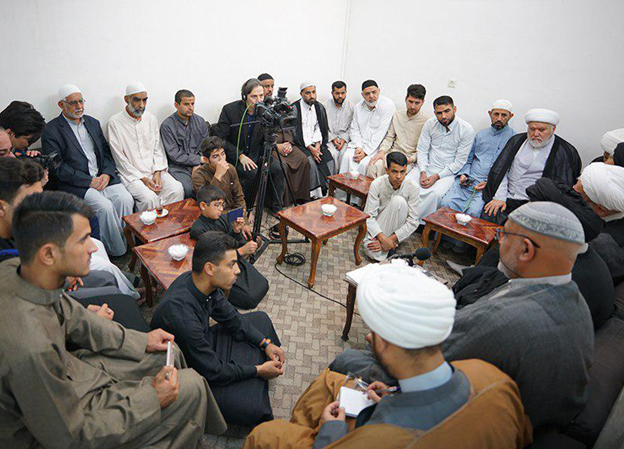 جمع من طلبة العلوم الدينية في حوزة كربلاء المقدسة يزورون سماحة المرجع الشيرازي