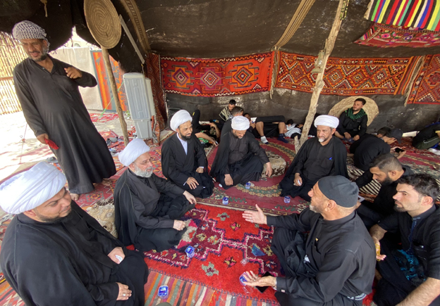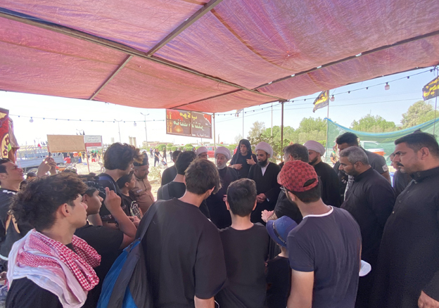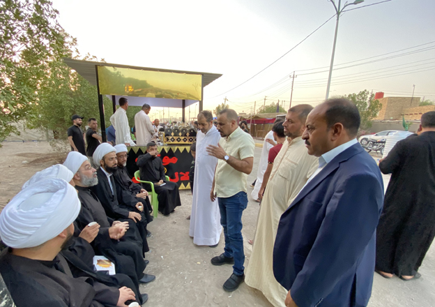 واصل وفد حوزة العلامة الشيخ أحمد بن فهد الحلي رحمه الله العلمية برنامجه التبليغي السنوي المقرَّر لأيام زيارة الأربعين الحسيني المقدَّس ١٤٤٣ هجرية، المتميز بمشاركة الملايين من الزوار مشاة الى كربلاء المقدسة، الأمر المحتَّم أهمية وجود برامج تبليغية للحوزات العلمية. جولة الوفد شملت مدينتي السماوة والخضر خلال اليومين الماضيين التاسع والعاشر من شهر صفر الأحزان 1443 هجرية، وكان للشباب المؤمن المتحمس والناشط في مجال الخدمة الحسينية الحظ الأوفر من اهتمام وزيارات الوفد حيث التقى جموع الشباب المشاة على طول الطريق مبلغاً سلام، وتحيَّات، ودعاء سماحة المرجع الديني آية الله العظمى السيد صادق الحسيني الشيرازي دام ظله، وتوجيهه المستمر بضرورة الاهتمام بالشباب ولملمة شأنهم وجموعهم بما يخدم الدين الحق. كما وبين الوفد عظيم عمل خدمة سيد الشهداء عليه السلام ونشاطهم في هذا الطريق، وتعظيمهم الشعائر الحسينية المقدَّسة فبها ضمان السعادة الدنيوية والأخروية والحياة السعيدة، وكما ورد في الحديث الشريف: «بالحسين تسعدون». كذلك زار الوفد عشرات المواكب والهيئات الحسينية العاملة باعثاً لها على مواصلة العمل والنشاط والتزام النهج الحسيني وتوسعة نشاطها الثقافي التبليغي إضافة الى النشاط الخدمي حتى يكون عملها محطَّ انظار العالم اجمع. وقد التقى الوفد بعدد من الشخصيات والخطباء كان منهم الخطيب الحسيني الشيخ علي السماوي في حسينية جنَّة رقية، مطلعاً على نشاط الحسينية في خدمة الزائرين. ومن المحطات التي توقف عندها الوفد اثناء زياراته لقاءه المتميز مع رابطة أًهل البيت عليهم السلام للمسرح الحسيني المتنقّل مواكبةً لحركة الزائرين من البصرة وحتى كربلاء المقدسة، حيث اطلع الوفد على نشاط الرابطة الهادف الى نشر الثقافة الحسينية عبر المسرح.