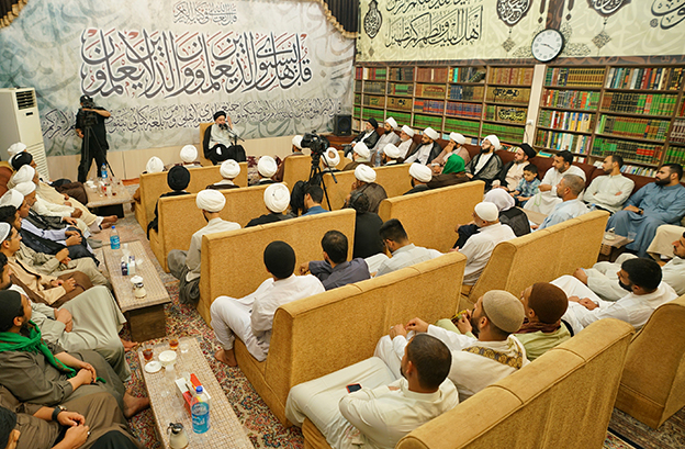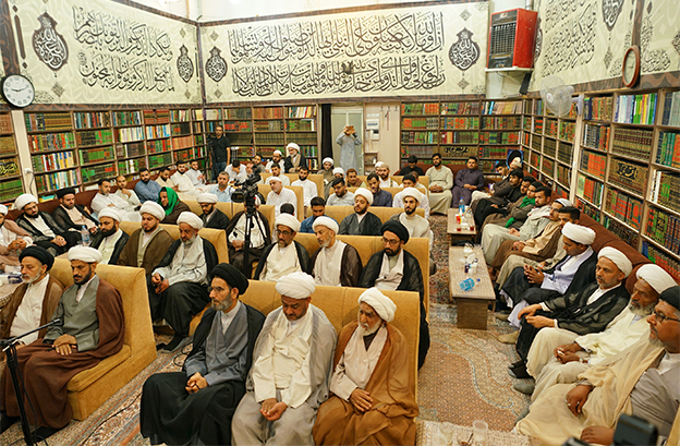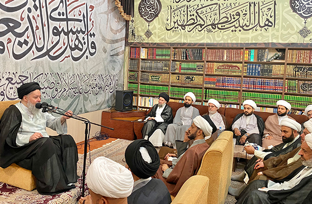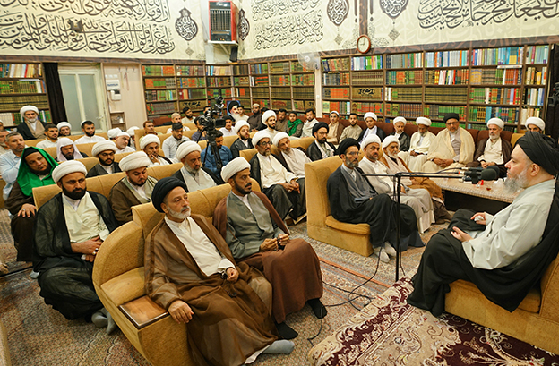 آية الله السيد حسين الشيرازي يلتقي جمعاً من أساتذة وطلبة حوزة العلامة ابن فهد الحلي العلمية