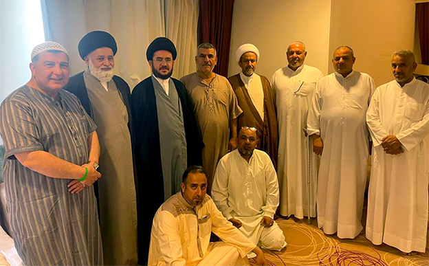 في اطار التواصل مع المرجعيات الدينية والعلماء الاعلام زارت بعثة المرجع الديني سماحة آية الله العظمى السيد صادق الحسيني الشيرازي دام ظله في مكة المكرمة السادة العلماء والفضلاء من أسرة آل الحكيم دامت بركاتهم في مقرِّ اقامتهم في مكة المكرمة. وقد دار الحديث حول احياء تراث العلماء وبعض البحوث العلمية كالوجه في جواز لبس المخيط اضطراراً مع العلم بحصول الاضطرار ومنافاة الجواز لقاعدة ما به الاختيار لا ينافي الاختيار. كذلك وفي اطار التواصل مع حجاج بيت الله الحرام زار وفد من بعثة سماحة المرجع الشيرازي دام ظله مقر حملة الميقات لأهالي البصرة حيث ألقى الوفد كلمة أكد عبرها على أهمية الالتزام بالواجبات والمستحبَّات، وكذا أهمية أن يتَّصف الحاج المؤمن بعلامات المؤمن الخمس الواردة في الرواية الشريفة، وأن يبذل الجهد الكافي في الأَعمال التي ترفع مقامه في الدنيا والآخرة.