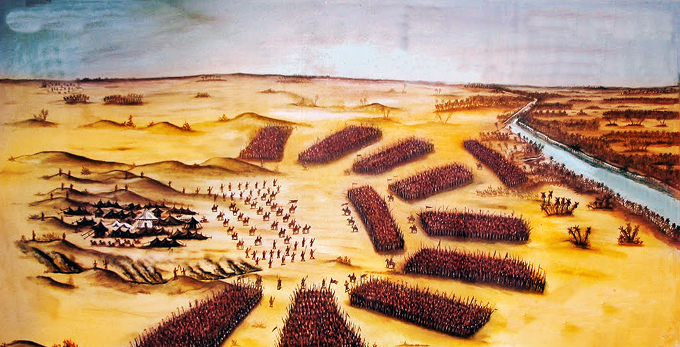 عسكرُ ابن زياد لعنه الله حملته بعد ان تقدم عمر بن سعد على فرس له،
