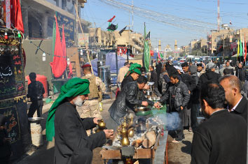 خدمات مستمرة من قبل المواكب الحسينية لزائري سيد الشهداء عليه السلام